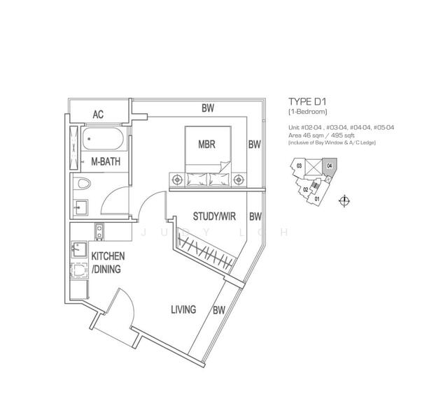 Spacious 495sqft with a separate closet space which can used as a study area.