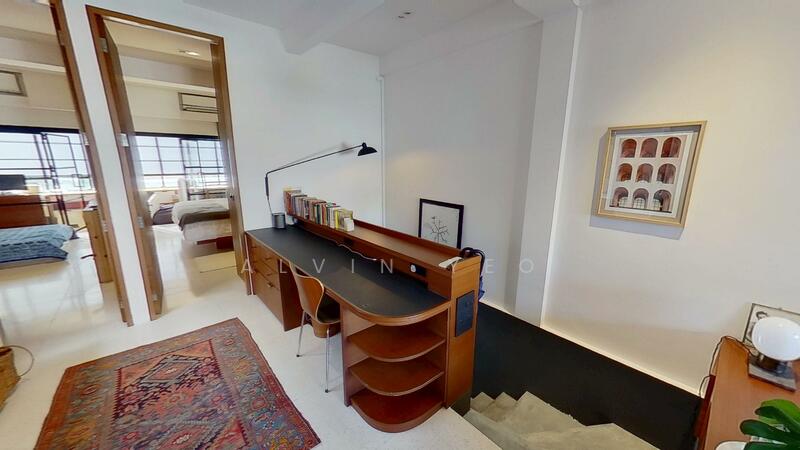 The apartment has an old shophouse feel, with its own internal stairs at both the front and back, offering character and privacy. Bedrooms are generously sized, and both come with built-in wardrobes.