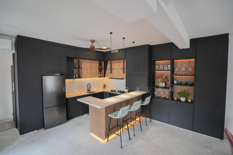 - Open island kitchen