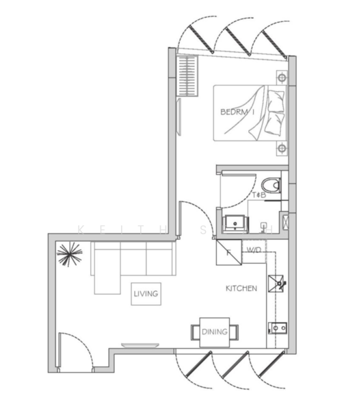 There are 1 bedroom(s) with 1 bathroom(s) in this unit.