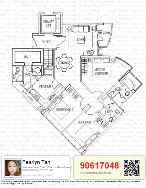 - Level 1: Private Lift Lobby, 3 bedrooms, living room, kitchen and utility room (1436sf)