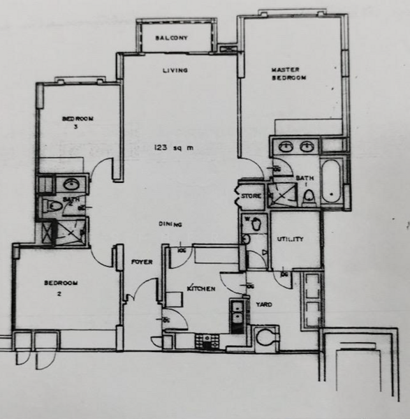 A Spacious 3 bedroom plus 1 Study room with 2 bath and WC. Despite its centrality, it’s known for serene, green surroundings and a resort‑like ambience