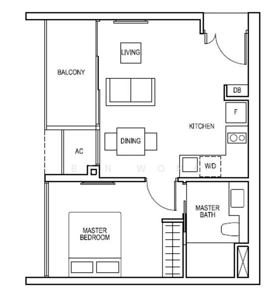 The well-designed 495 sqft living space offers a cozy and comfortable environment, perfect for singles or couples looking for a modern and stylish home.