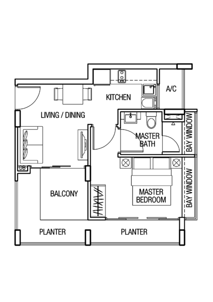 - 1BR + Spacious Living Room and Balcony