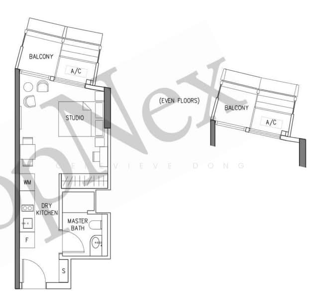 Floor size of this unit at Bugis studio fully furnished near mrt near suntec is 420 sqft.