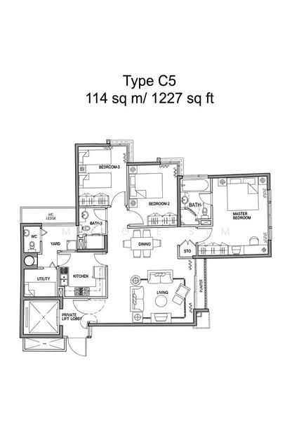 - 3 rooms, comes with a small balcony at the Living hall