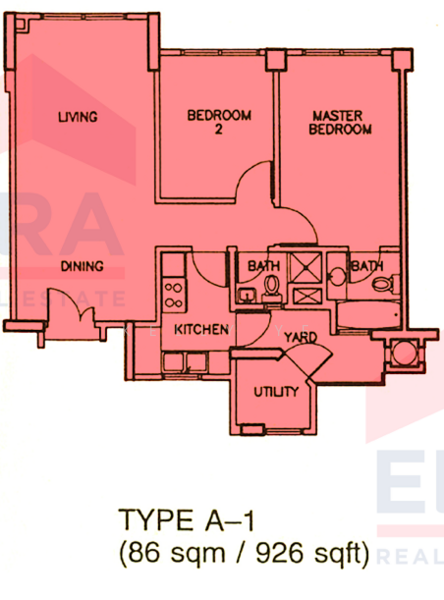 Quiet facing, High ceiling, spacious 2 bedroom layout