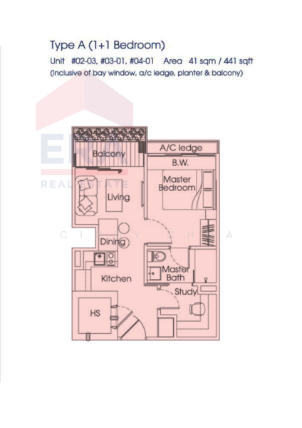 - 1 Bedroom with study, 1 Bathroom with usable balcony