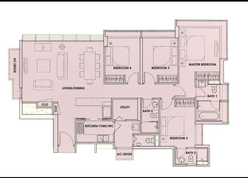 Very high floor 4-bedroom unit