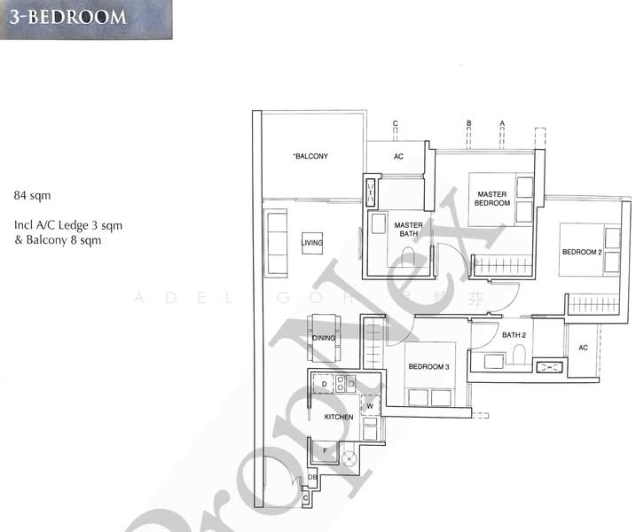 - 3 bedrooms, 2 bathrooms unit @ 904sqft