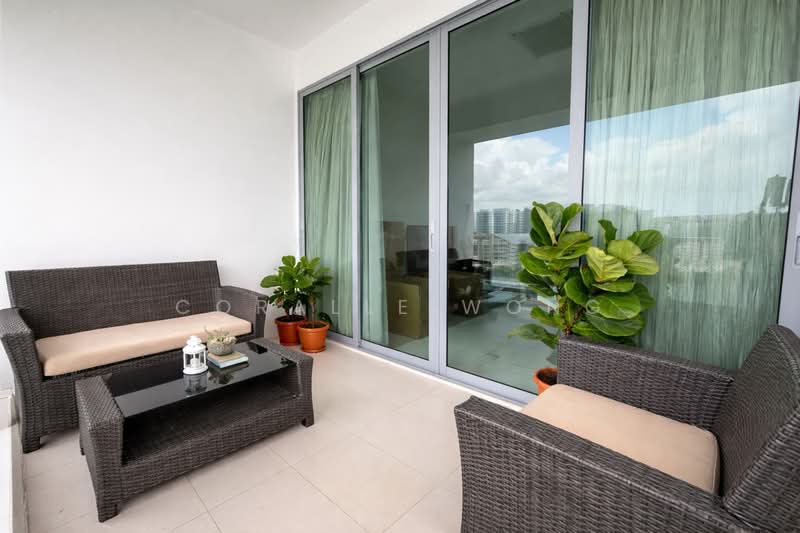 Living and dining opens to a good size balcony with open views