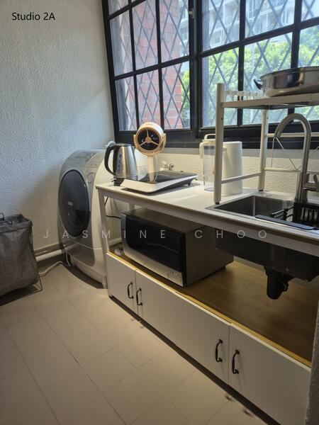 Fully Furnished comes with Air-con, Kitchenette, Refrigerator, Microwave, Induction Cooker, 2-in-1 Washer/Dryer, TV, Dimmable tri-color lighting with ceiling fan, Queen or King sized bed , big desk, coffee table