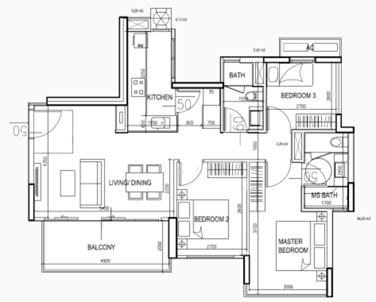 Regular sized bedrooms and spacious balcony.