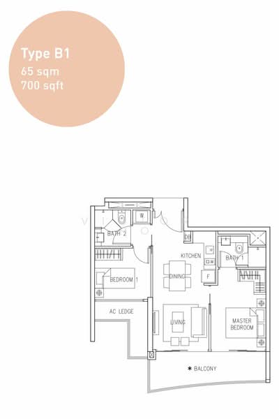 Unblocked high level 2 bedrooms with 2 baths and gas stove near MRT