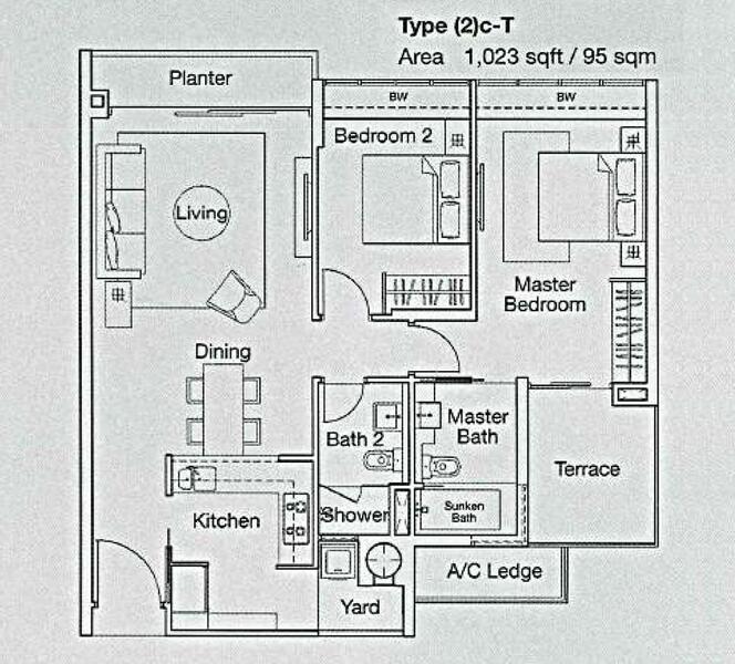 Ferraria Park Condo | District 17 | Freehold | Spacious 2 Bedroom 2 Bathroom unit