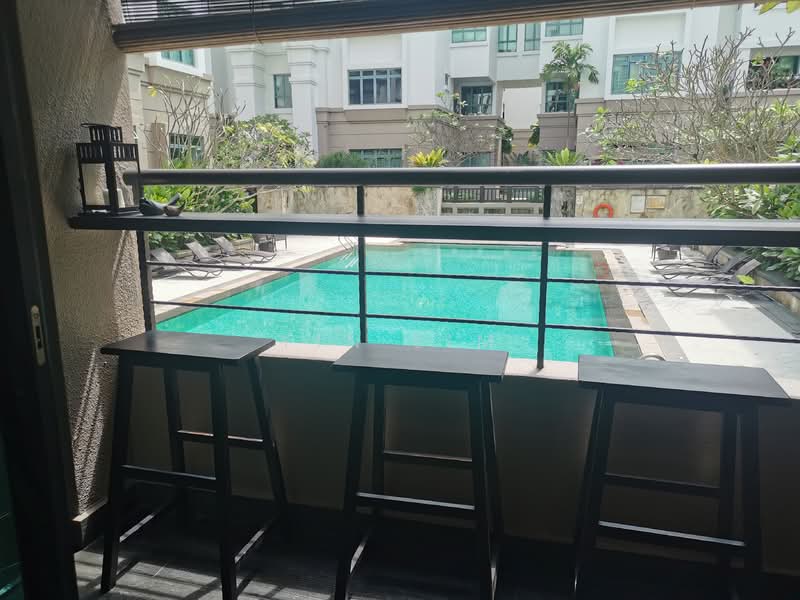 Pool facing patio balcony.