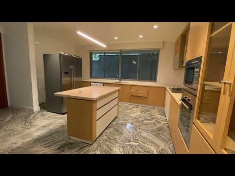 The first floor features a spacious living area facing a swimming pool, a dining area and a generously sized kitchen connected to two helper’s rooms and the laundry area, and an en suite guest room. On the second floor are four en suite bedrooms and a family area.