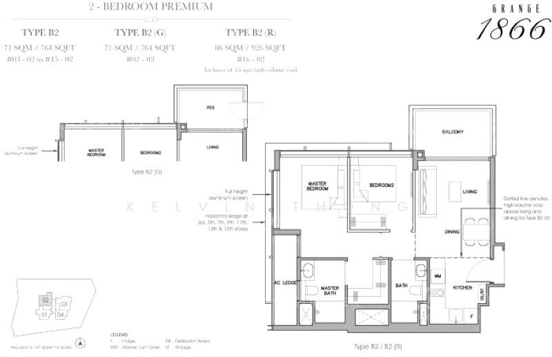 Floor size of this unit at Grange 1866 is 764 sqft.