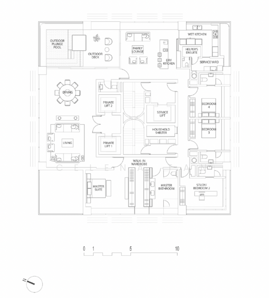 Spanning 3,531 sqft, the apartment is designed for those who value space, discretion, and prime district living. With only one residence on this level, residents enjoy the exclusivity and privacy rarely found in central Singapore.