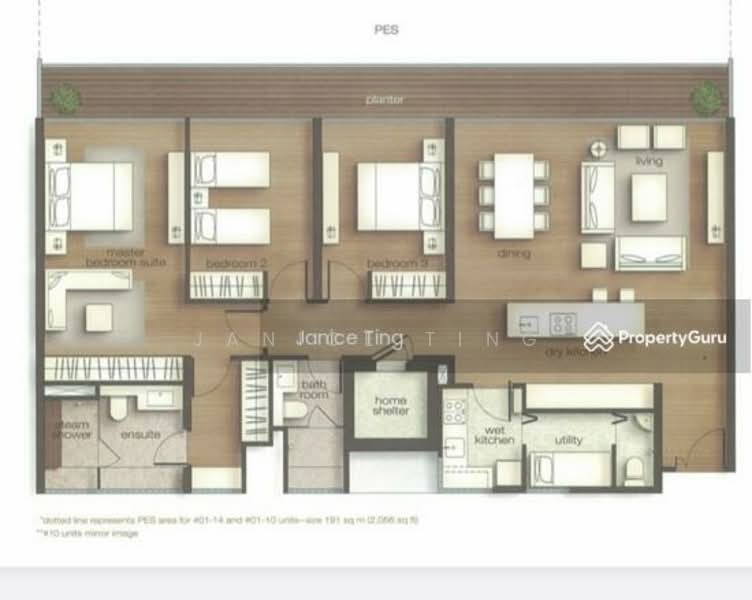 3 bedrooms unit with wet & dry kitchen space.