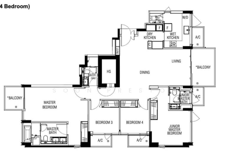 Generous 4-bedroom configurations span 1539 sqft, appointed with gourmet wet and dry kitchens, dual master suites, wine fridge, and bespoke premium fittings throughout — including perforated blackout blinds, ceiling fans, and LED energy-efficient lighting. Unblocked landscape views complete a living environment of quiet distinction.