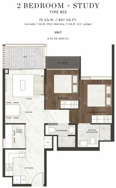 - 2 Bedrooms + 2 Bathrooms + Balcony + Study