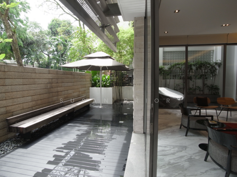 Ladyhill exclusive boutique ground floor! Utterly secluded 3+2, quiet and green. 3 ensuite plus maid ensuite. Special study by the pond. 3 balconies! Near Shangrila Hotel between Orchard Rd and Stevens Road.