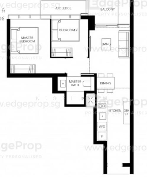 657 sqft functional 2 bedroom layout