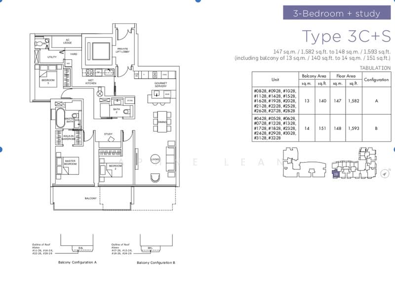 •2-Bedrooms + Study 1***** sqft) - 29 units