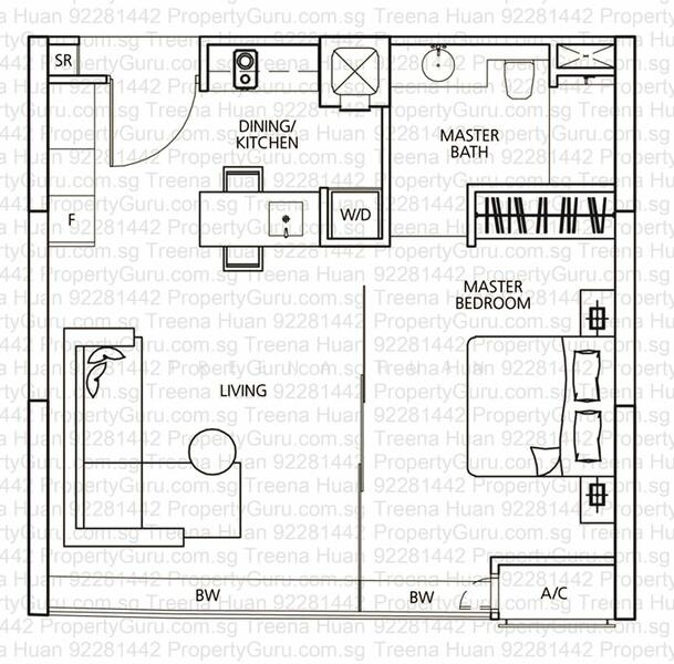 Partially furnished with Fridge, Oven, Microwave, Induction cooker, Washer cum Dryer