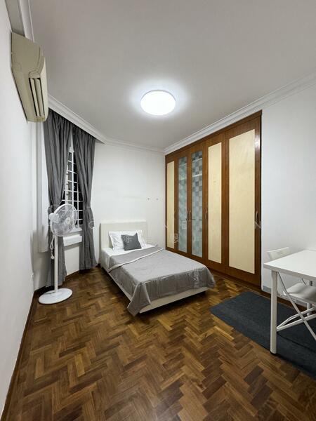 Fully furnished with bed and mattress, pillow, wardrobe, desk, chair, and aircon