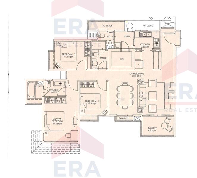 3 bedrooms unit with spacious balcony.