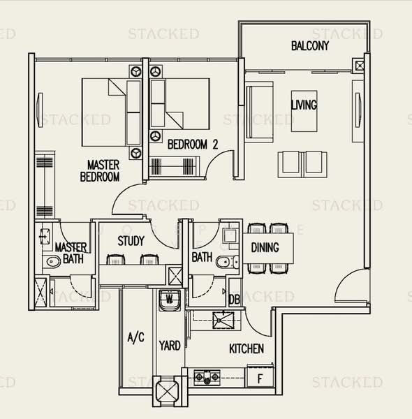 2 Bedrooms plus Study
