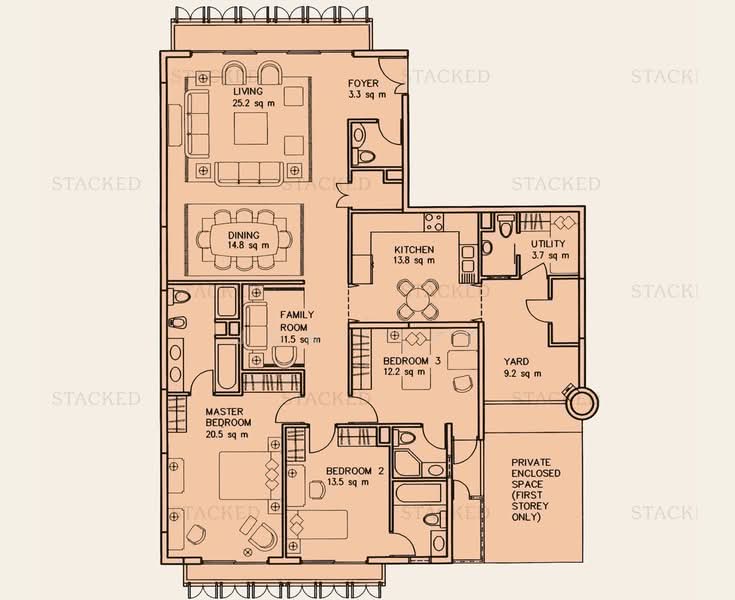 3 generous spacious bedrooms all ensuite