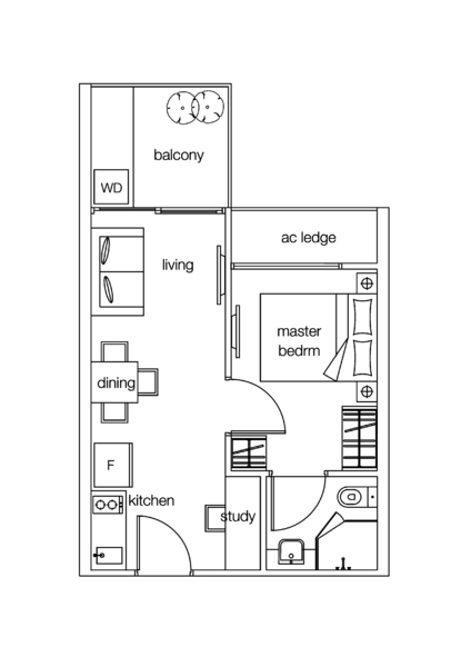 - With a total area of 398 sqft, the apartment offers a practical layout that maximizes space.