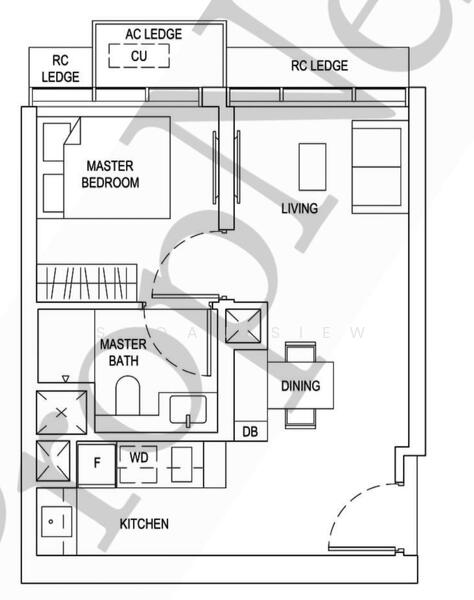 Doorstep to amenities too , this 1 bedder layout is the largest of the project , with an efficient living and tucked in kitchen.