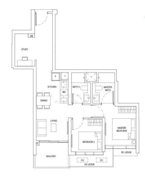 Size: 807 sqft (Efficient 2 Bed + Study layout)