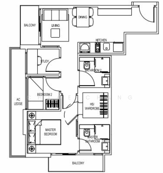 Advantaged with a functional layout of 2 bedrooms, 2 bathrooms and an additional study room for wfh days. The master bedroom leads out to an additional balcony that overlooks the pool.