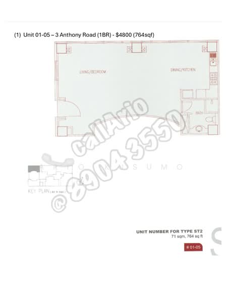 • 1 Bedroom — size from 764 sqft (available from 12 May 2026), rental from S$4,800 per month.