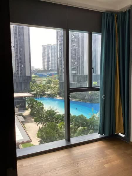 Balcony facing landed, rooms facing swimming pools