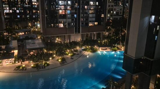 Pool view. 2 bedrooms with study. Quiet facing.
