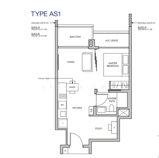 This 538sqft 1-Bedroom + Study is one of the most efficient layout in the development.