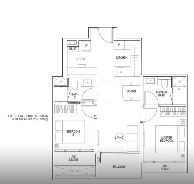 High floor 2 bedroom plus study