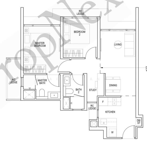 - Best 2BR + Study Layout