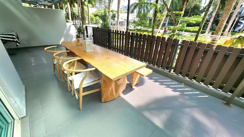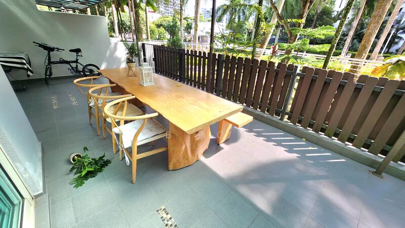 Well-maintained common room located on the ground floor of Rio Vista condominium, with direct access to balcony — rare and airy layout.