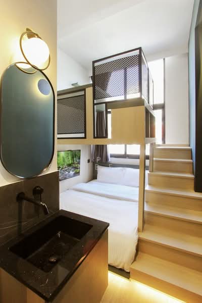 River Valley 268 goes beyond the traditional loft bedrooms. The loft units feature a workstation positioned by the window, allowing residents to enjoy natural light while working or studying during the day. The space beneath the staircase is cleverly utilized for storage, and LED strips under the platform ensure safety when moving up and down in the dark.