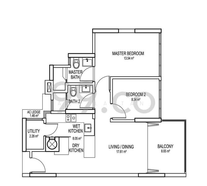 - 2 Bedrooms with 2 Bathrooms + Store Room
