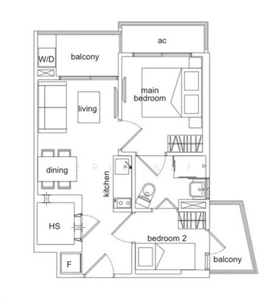 Compact 2 bedroom with twin balconies