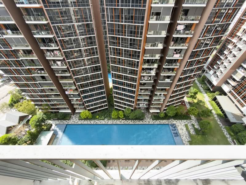 - Balcony has a full view of the swimming pool.