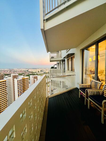 The unit enjoys abundant Natural Ventilation, Breezy throughout the day, and Super Bright with no afternoon sun. Large windows open to Beautiful views all around the apartment, creating a bright and airy atmosphere. RARE ALERT : You get to have the pleasure of witnessing both sunrise and sunset everyday from your Living & Bedroom Balconies…..